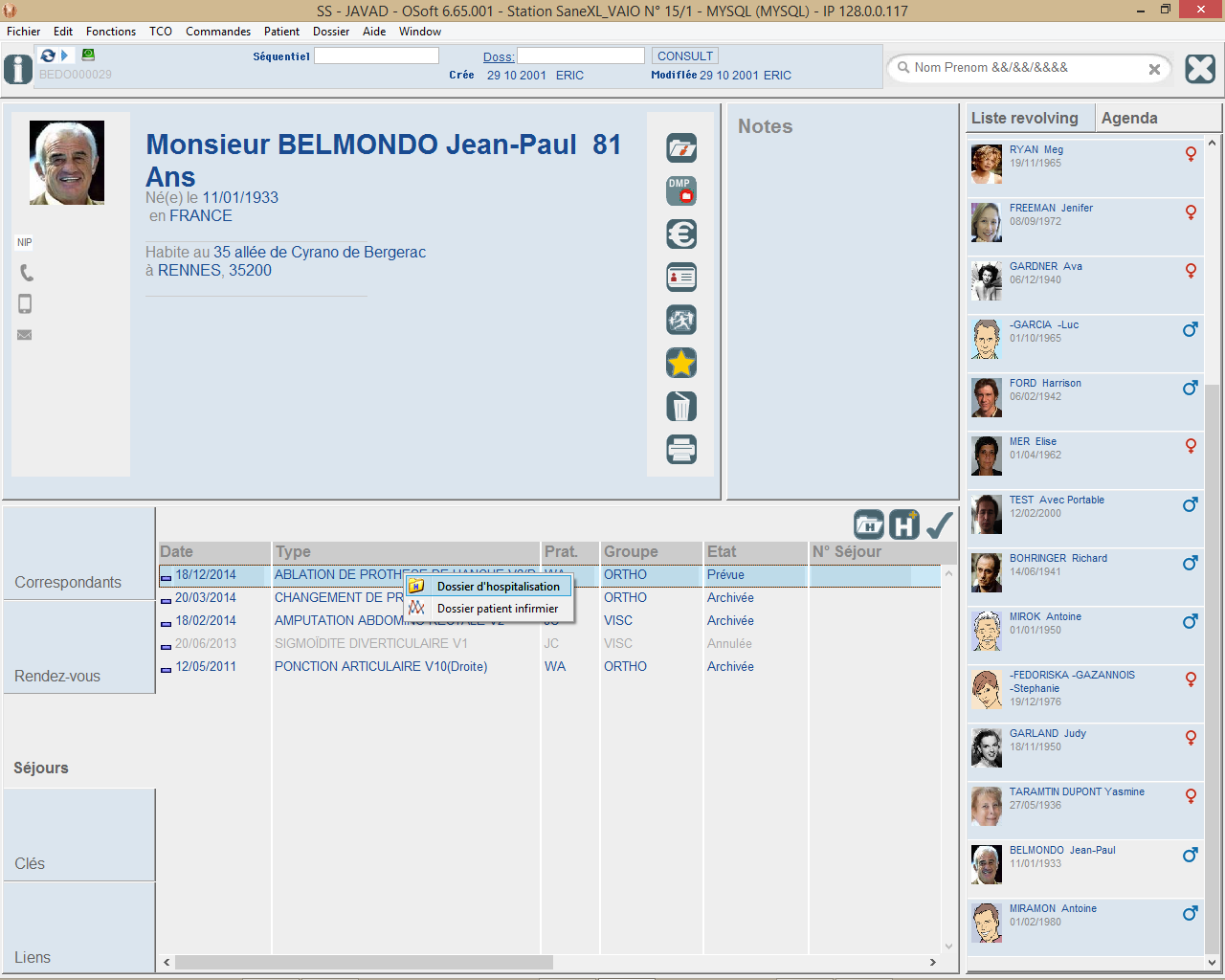 Pour visualiser ou modifier une consultation d'anesthésie existante, plusieurs chemins sont possibles. il est nécessaire d'ouvrir le dossier du patient. |