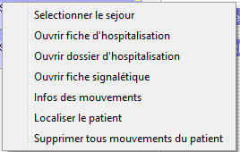 Un double clic sur la vignette ouvre la fiche d’hospitalisation. Un clic droit permet d’accéder à des fonctions avancées. |